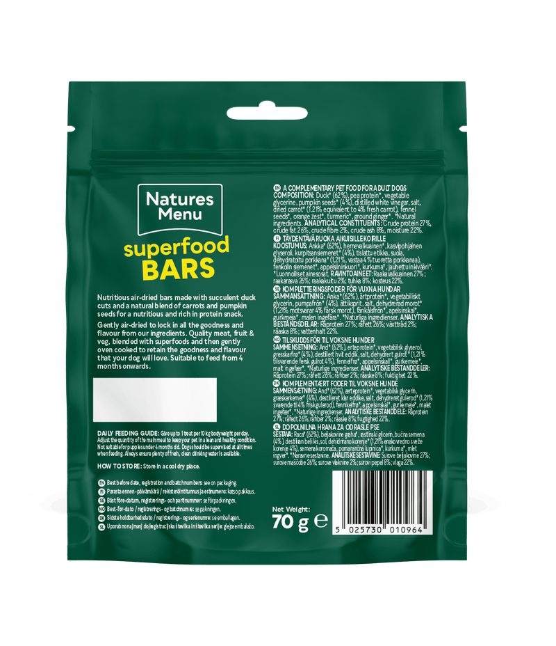 • Made with succulent duck pieces and a natural blend of carrot and pumpkin seeds