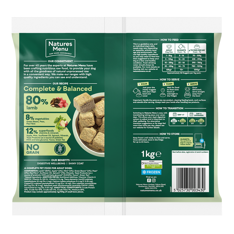 Natures Menu Raw Meal Nuggets 80/20 Lamb 1kg