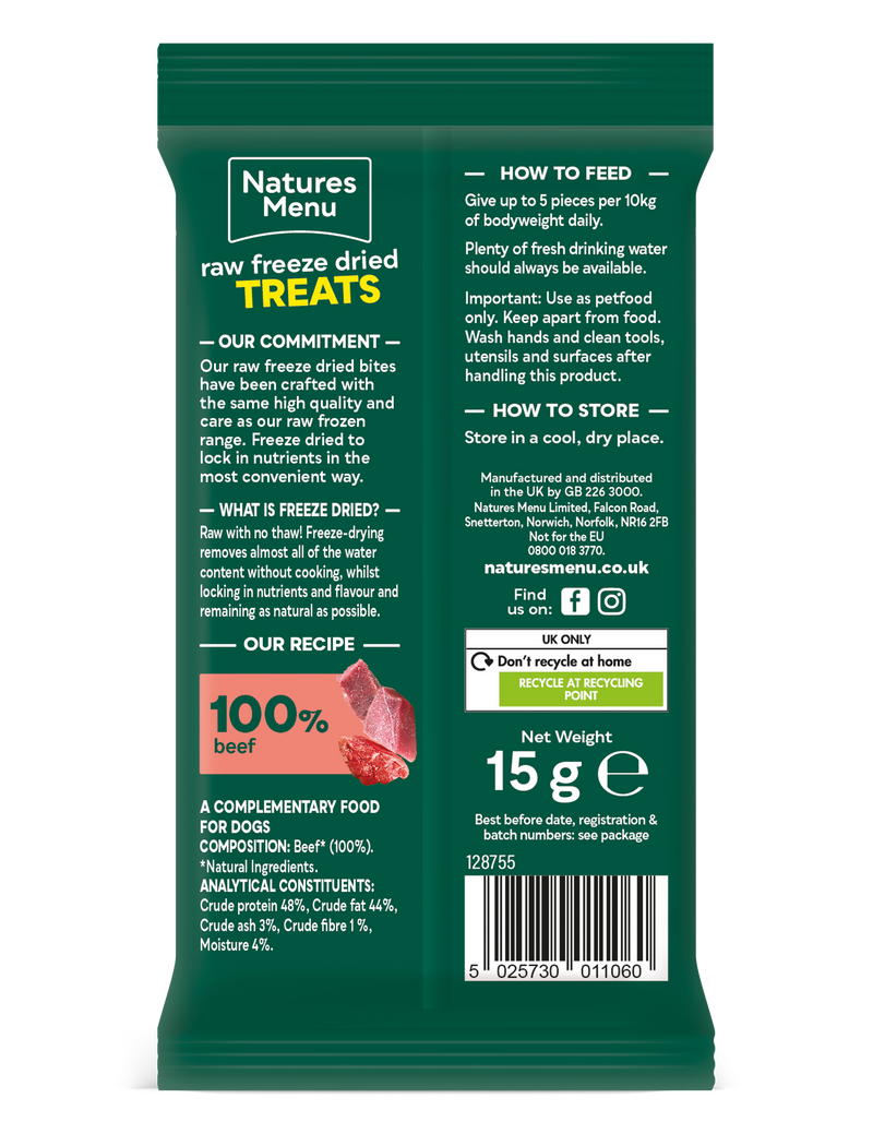 Natures Menu Freeze Dried Beef Meat Bites 15g